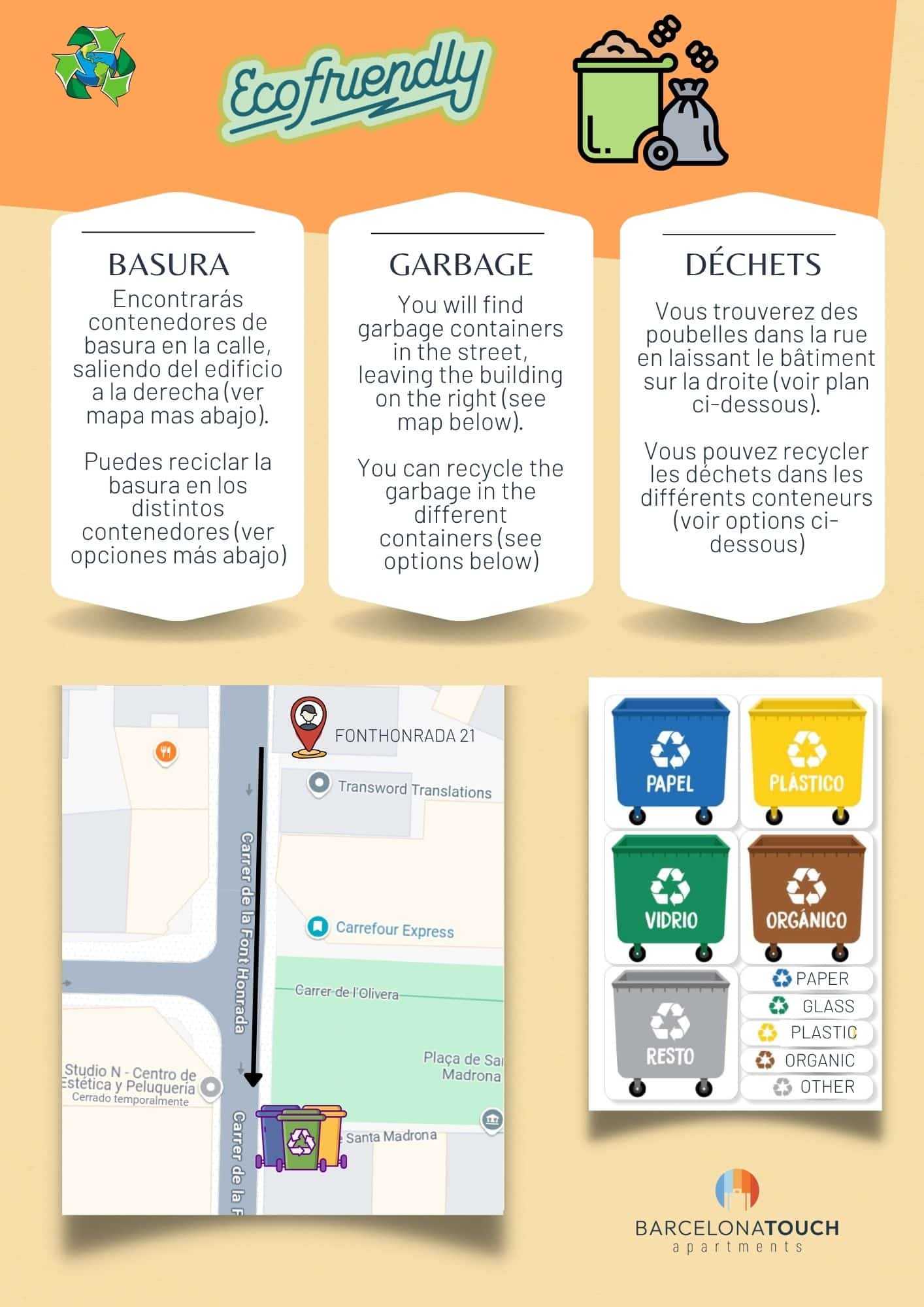 ➡️ La basura la dejes en los contenedores públicos de la calle. Mas abajo verás un mapa con el contenedor público más cercano donde podrás desechar y reciclar ♻️